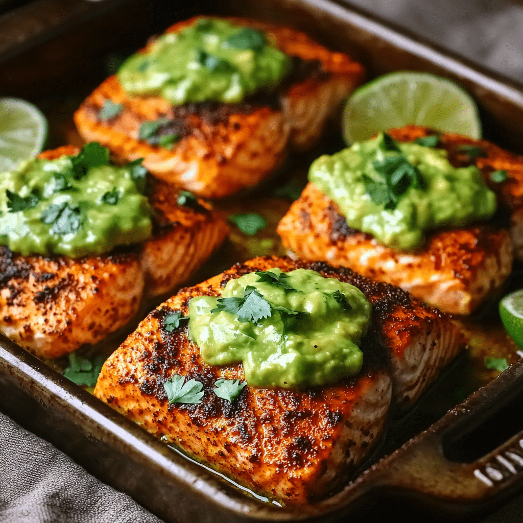 Spicy oven-roasted Cajun salmon paired with a silky avocado lime sauce. This nutritious, flavor-packed dish is perfect for fast, satisfying dinners.
