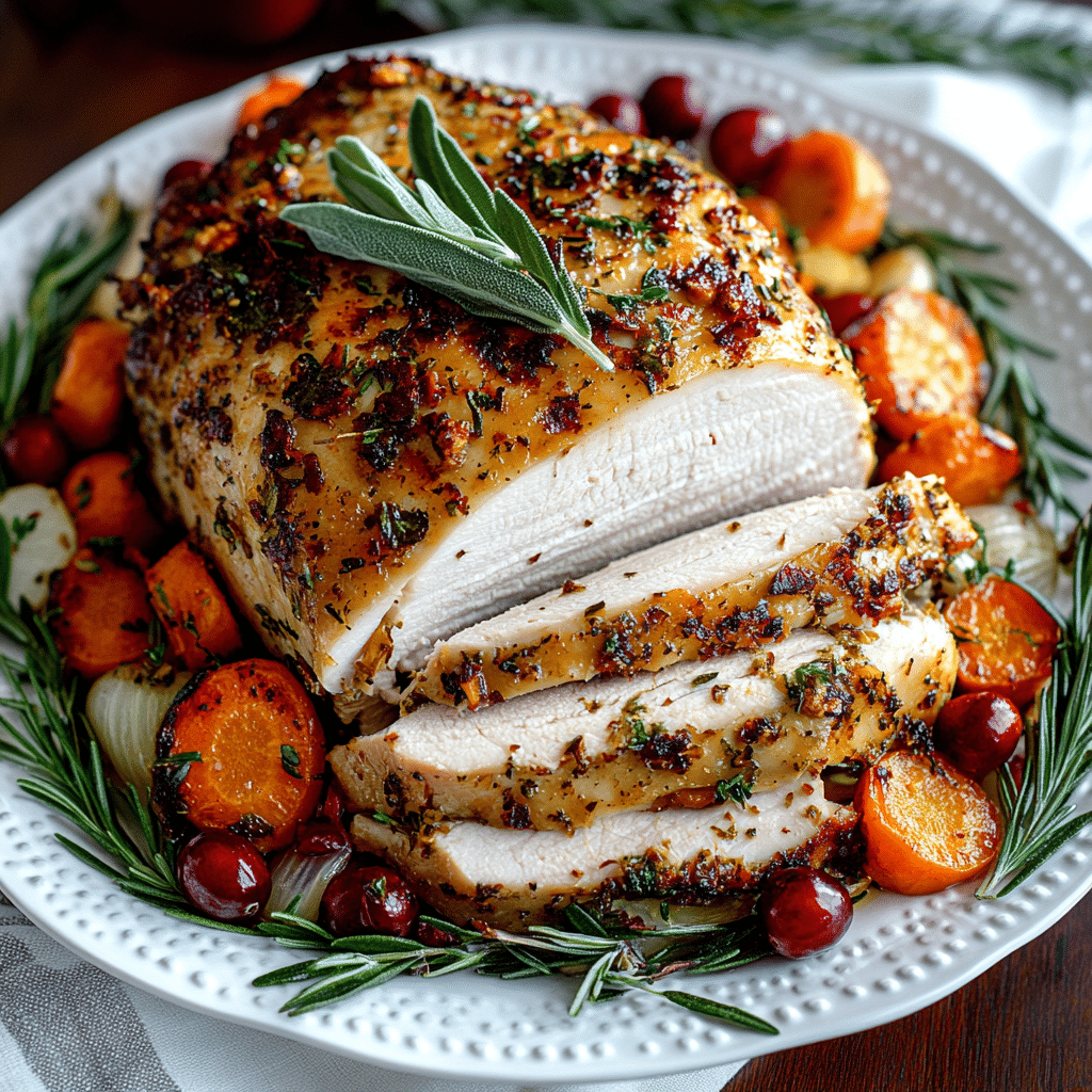 Juicy Butterball turkey breast made in the slow cooker with a garlic-herb rub, fresh vegetables, and optional homemade gravy.