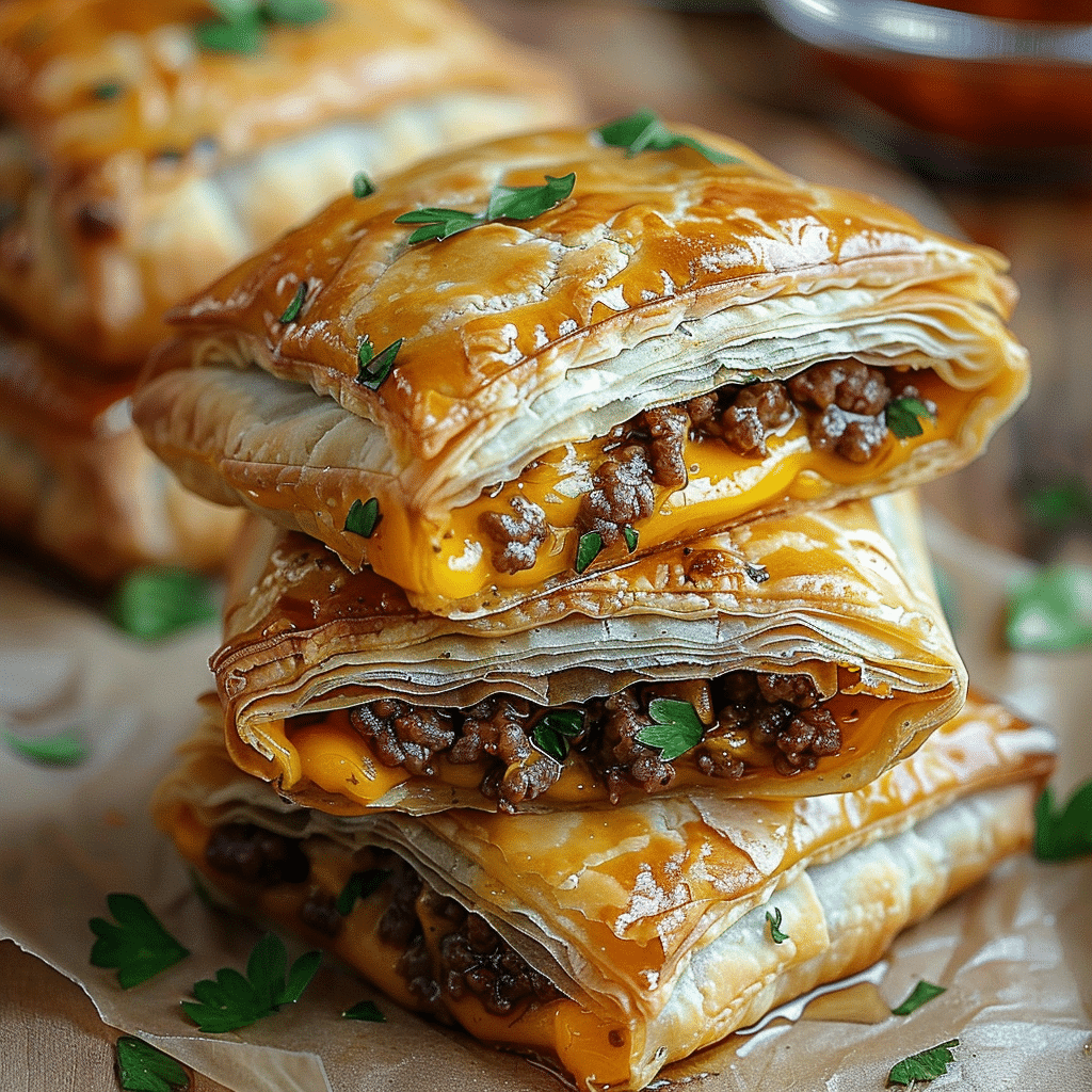 Cheeseburger Pockets Recipe with seasoned ground beef, cheddar cheese, and flaky crescent dough baked until golden.