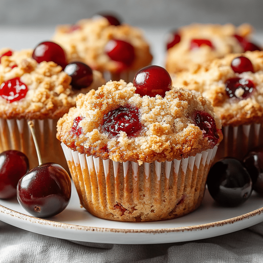 The beauty of these muffins lies in their simplicity and taste. The cherries add a fruity burst in every bite, while the crumble topping gives a light crunch that balances the soft texture. This recipe is ideal for all skill levels. You’ll find that the ingredients are basic, and the steps are easy to follow, which makes them a reliable favorite for any occasion.