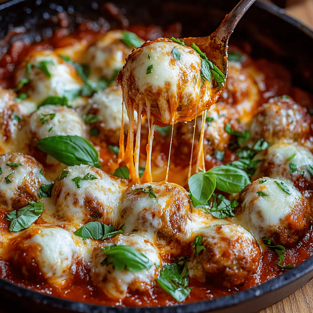 5. Top meatballs with sauce and mozzarella. Bake for 40–45 minutes.