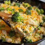 The texture turns creamy and rich without complicated techniques. Melted cheese blends into the rice while the chicken stays moist and flavorful.