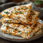 Need a fast, protein-packed meal that doesn’t skimp on flavor? This high-protein chicken ranch quesadilla is the perfect choice. Made with juicy shredded chicken, crispy bacon, creamy ranch and cream cheese, and a blend of melty cheeses, this quesadilla is pan-to-table in just 20 minutes.