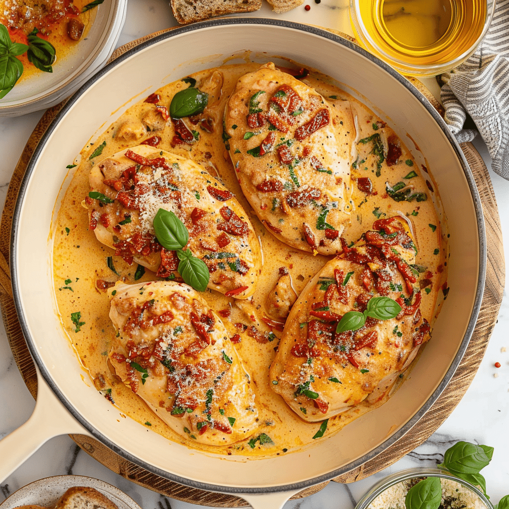 Marry Me Chicken is a rich and flavorful one-skillet dish featuring seared chicken breasts in a creamy sun-dried tomato parmesan sauce. Perfect for weeknights or date nights.