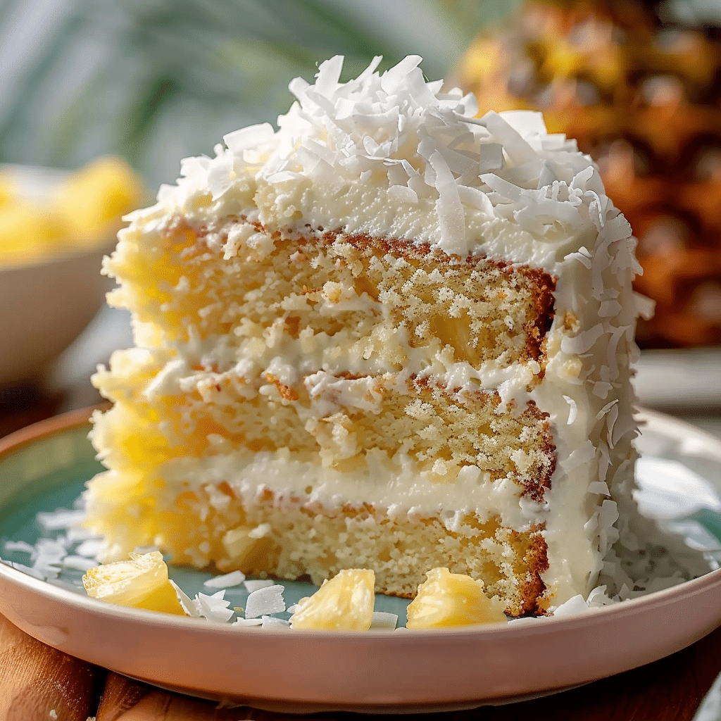 Moist Hawaiian Coconut Cake is a tropical dessert that combines fluffy coconut cake layers with sweet pineapple filling and creamy coconut frosting. The balance of flavors creates a refreshing yet indulgent treat that feels perfect for celebrations or special occasions. Coconut milk keeps the cake tender while pineapple filling adds brightness between each layer. When finished with shredded coconut, the cake becomes both beautiful and delicious. Once you try this recipe, it will quickly become a favorite dessert for gatherings and festive moments.