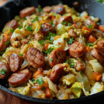 Savor the warmth of Sausage and Cabbage Stir Fry, a hearty one-pan meal featuring juicy sausage, crunchy cabbage, sweet bell peppers, and savory garlic soy flavor. Ready in 30 minutes, it’s perfect for weeknights or meal prep.