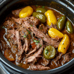 This Slow Cooker Mississippi Pot Roast features tender shredded beef simmered in a flavorful mix of butter, pepperoncini, and savory seasoning. It’s easy, hearty, and perfect for any night of the week.